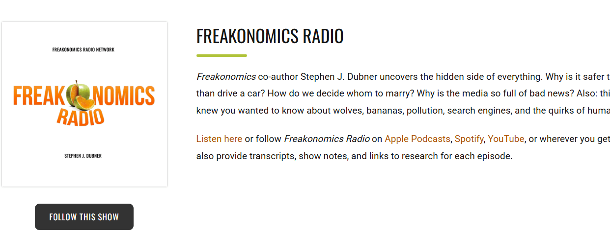 推荐理由:语速适中,用有趣的故事解释复杂概念(例如:为了解释石油交易,他们真的去买了一桶油)。