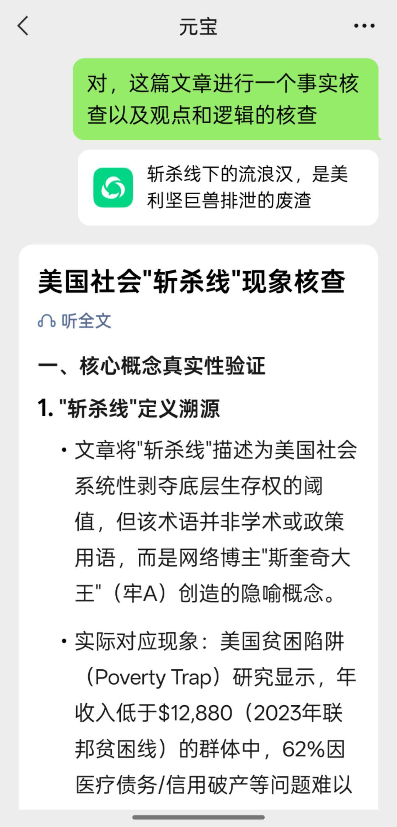- 事实核查: 微信元宝在处理细节盘问和技术事实核查时表现得非常严谨。我会要求它对文章中的数据来源进行背书,确保我不被误导。当然,灵光对于事实核查也非常有效。Deepseek在不开启联网搜索情况下只会使用训练语料。每次都要开启联网搜索也是一种负担!