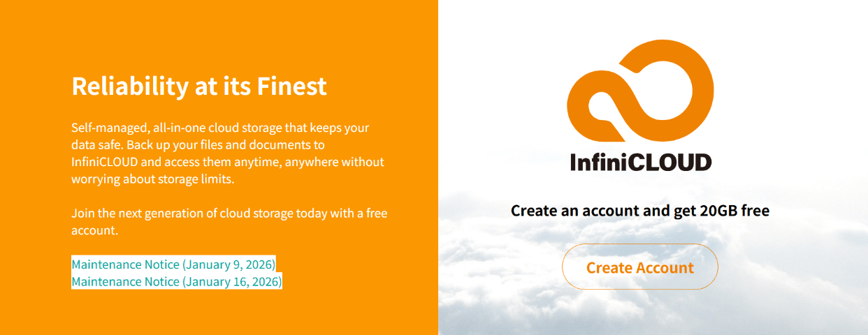 - 免费大空间( InfiniCLOUD| Get 20GB Free): 来自日本的服务。注册即送 20GB 空间,且无流量限制。如果你有较多大文件(如扫描件)需要同步,又希望免费获取容量,它是非常慷慨的选择。